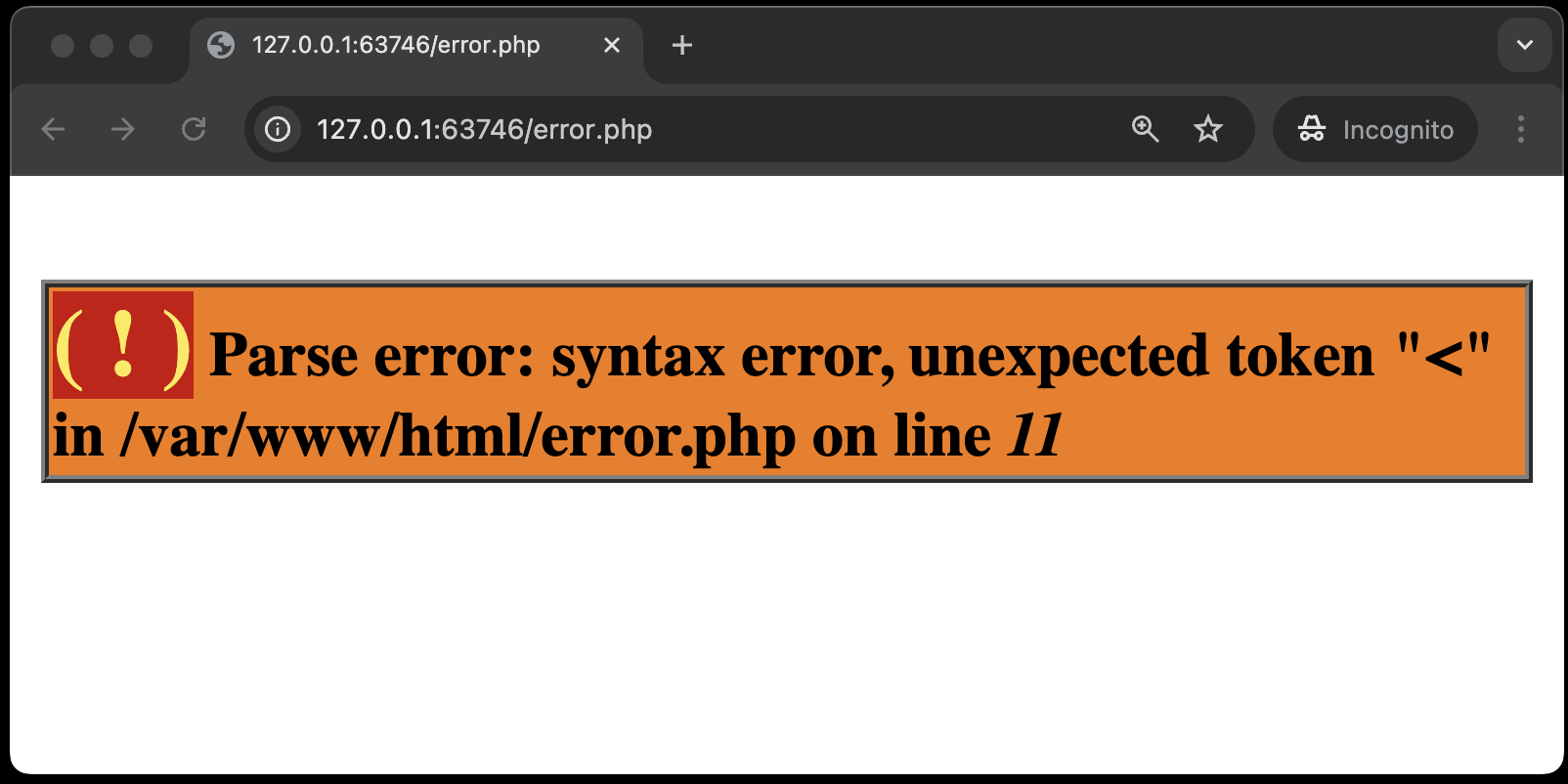 PHPは、スクリプトの文法上の誤りや、動作上の不具合をブラウザの画面に表示してくれます。 以下の手順でエラーメッセージを確認してください。