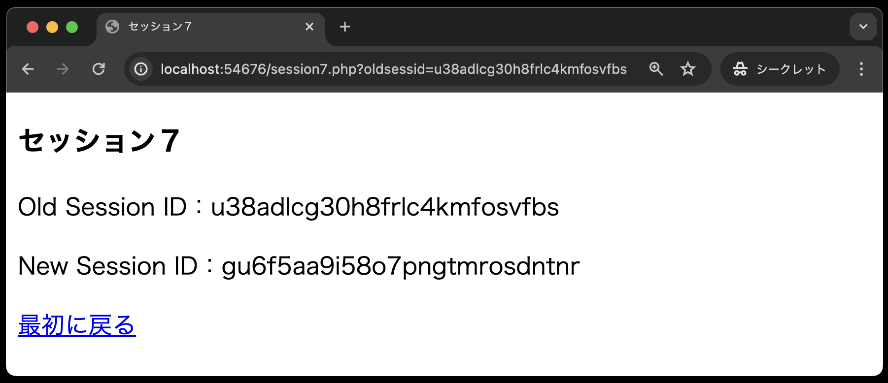 (おまけ)破棄前のセッションIDと新しいセッションIDを比較(session6.php, session7.php)